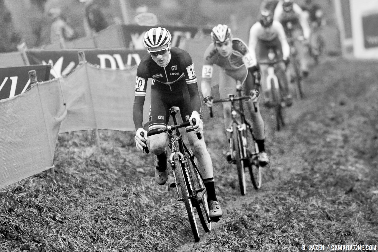 Antoine Benoist led the chase and finished second. 2016 UCI Cyclocross World Cup Junior Men. © B. Hazen / Cyclocross Magazine
