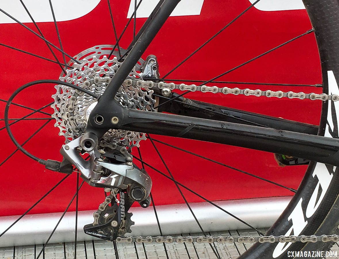 Other than the new frame, Kaiser’s build remains the same as his set up from the previous cyclocross season. He is running a full SRAM Force CX1 with a single 40 tooth chainring, which he said left him slightly undergeared on the new course. No word yet on availability for the new bike, but it wouldn't be a stretch to guess that they'll arrive prior to this cyclocross season. Stay tuned. We're of course anxious to try one.