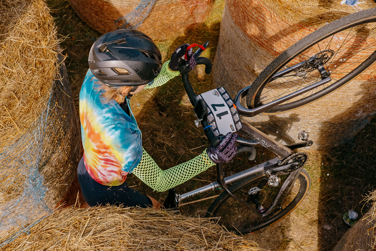 Contestants had to navigate an ever-changing maze of hay bales. 2024 SSCXWC Wisconsin - Singlespeed Cyclocross World Championships. © Mitchell Vincent