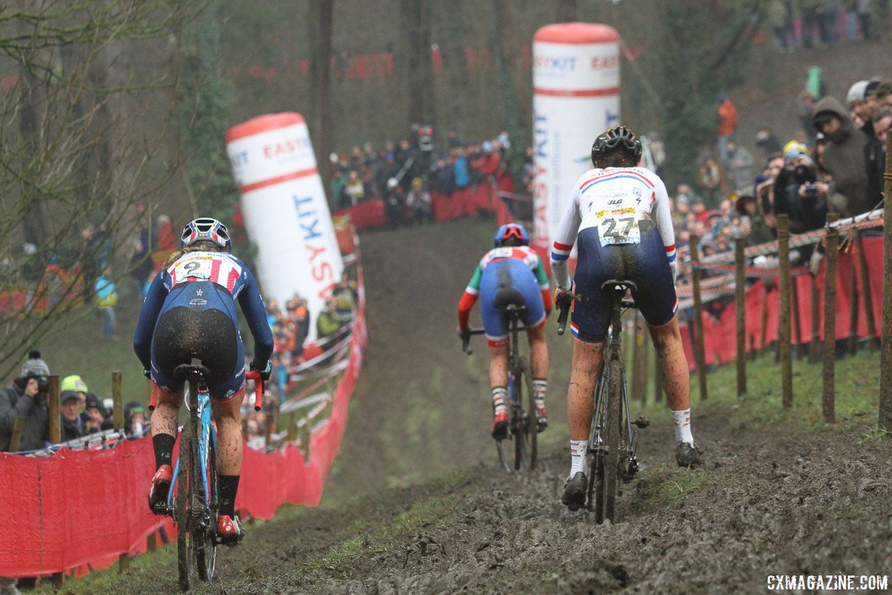 Richards eventually caught the leaders and kept moving right past them. A successful mountain biker in the summer, Richards felt right at home on the Namur course that seems to favor riders who can shred. She rode solo during the last lap to take home a memorable win and her first career Elite World Cup victory.