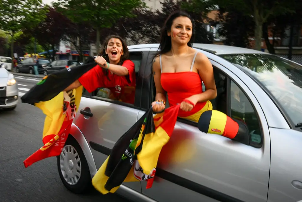 No winter clothes here: Belgians celebrate a summer World Cup victory that didn’t involve mud or Nys. © koinsky on flickr