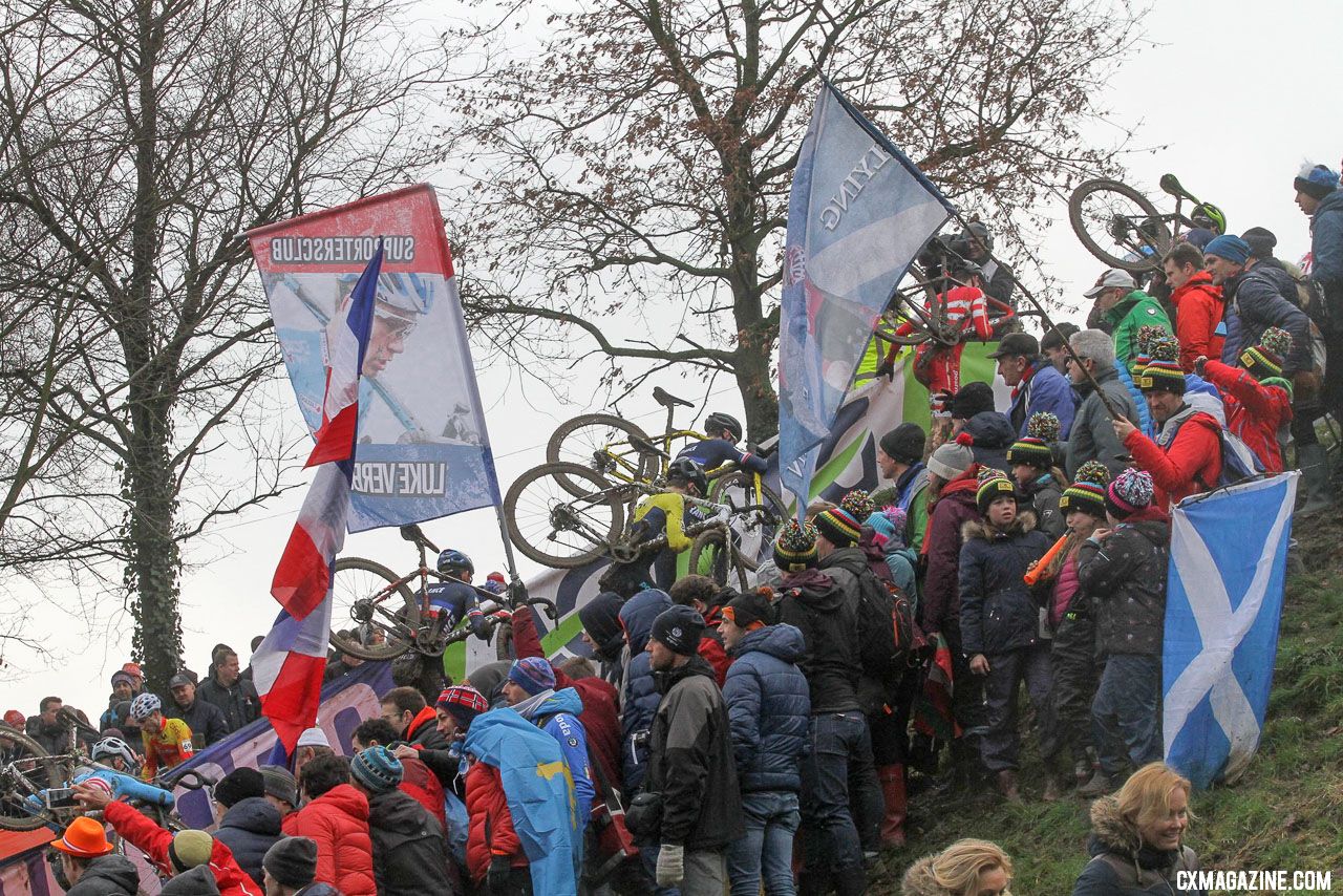 British fans cheer on Ben Tulett. Junior Men, 2018 UCI Cyclocross World Championships, Valkenburg-Limburg, The Netherlands. © Gavin Gould / Cyclocross Magazine