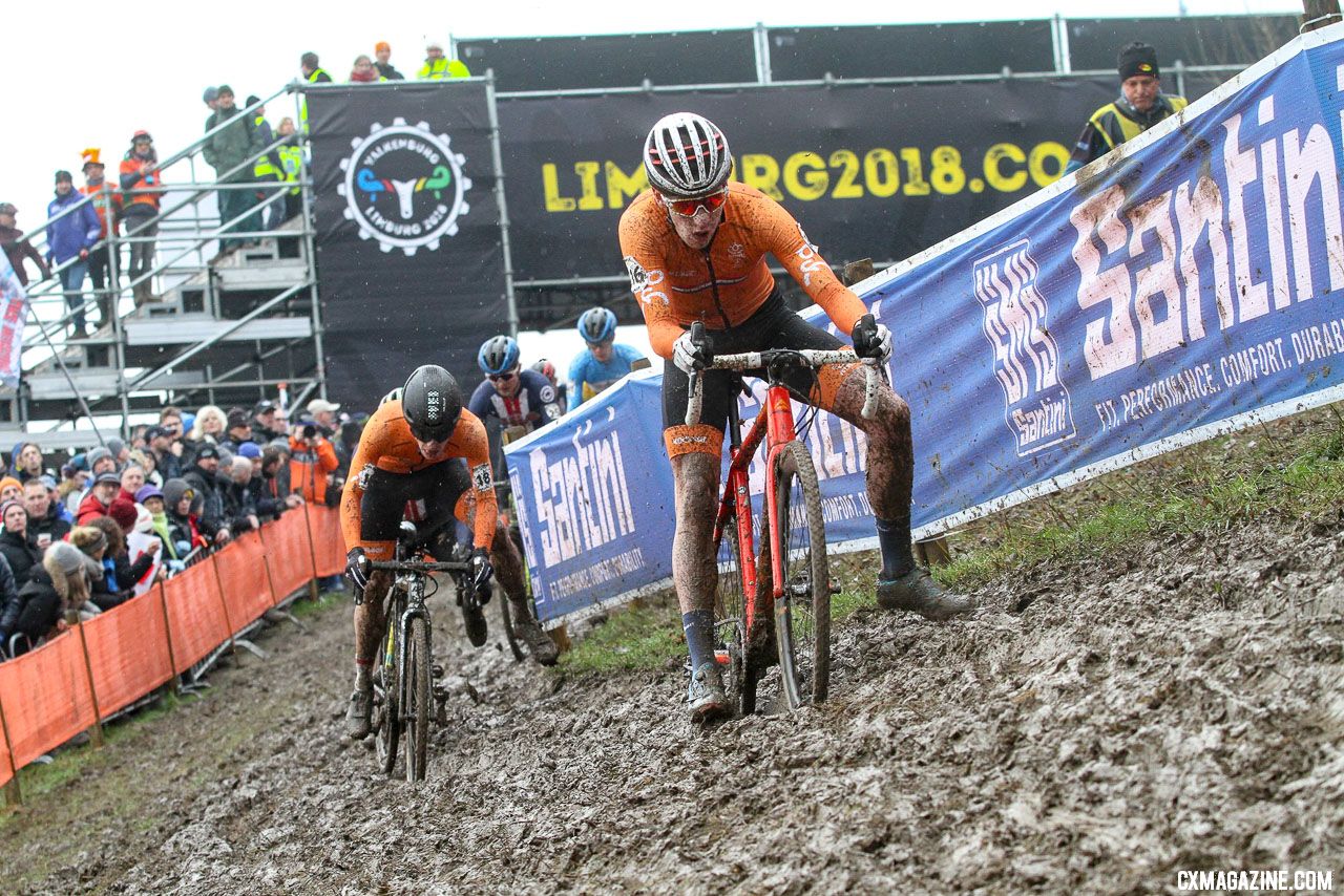 The Dutch riders finished strong, with Ryan Kamp reaching the podium. Junior Men. 2018 UCI Cyclocross World Championships, Valkenburg-Limburg, The Netherlands. © Bart Hazen / Cyclocross Magazine
