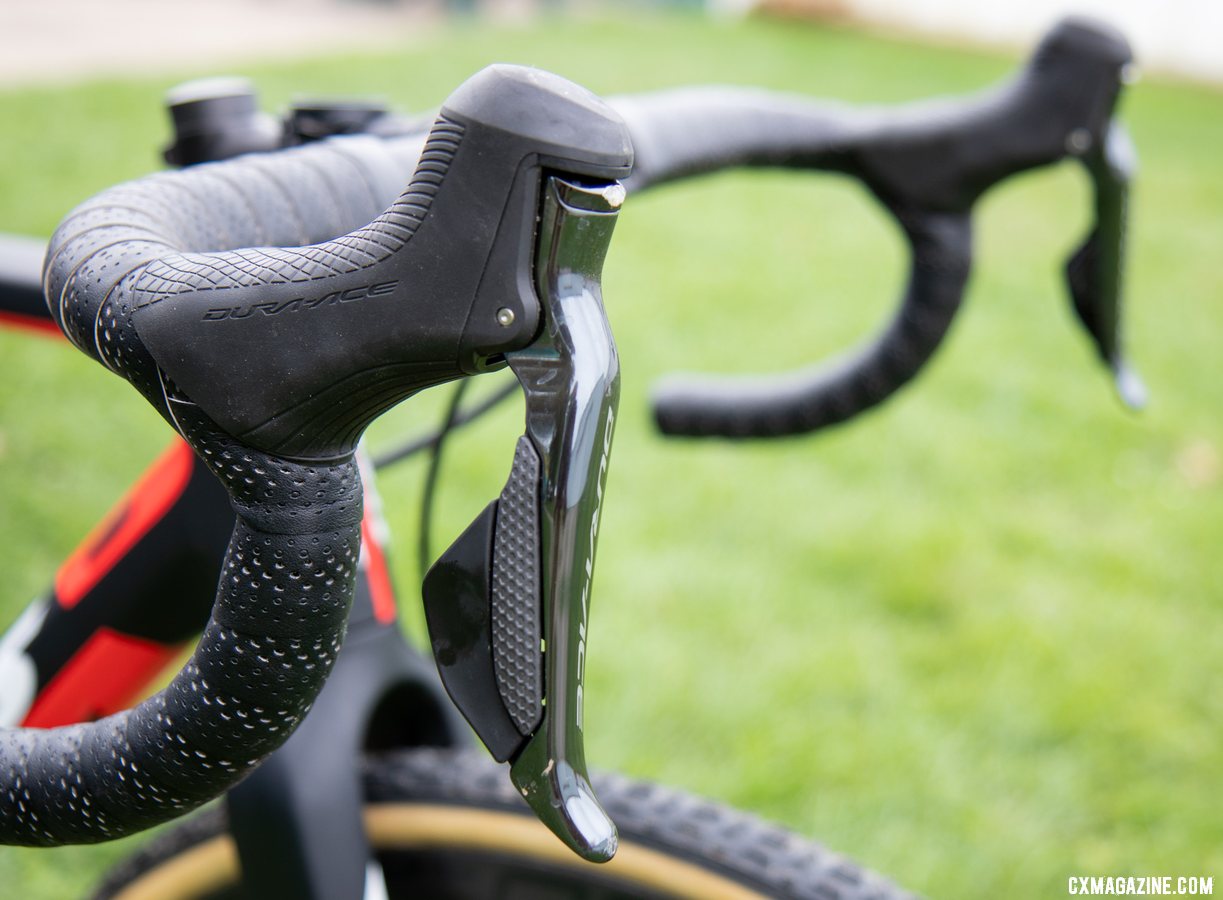 Vermeersch did run Shimano Dura-Ace R9150 Di2 front and rear derailleurs and R9170 shift-brake levers to stay in the Shimano family. Like the other Euros, there was no GRX or Ultegra RX to be seen on his bike. In fact, Vermeersch told us he did not even know what a clutch is—he just rides what the team gives him.