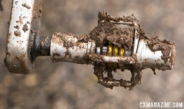 Crank Brothers Egg Beater pedals are a common choice for cyclocross racers for their mud shedding design and light weight.