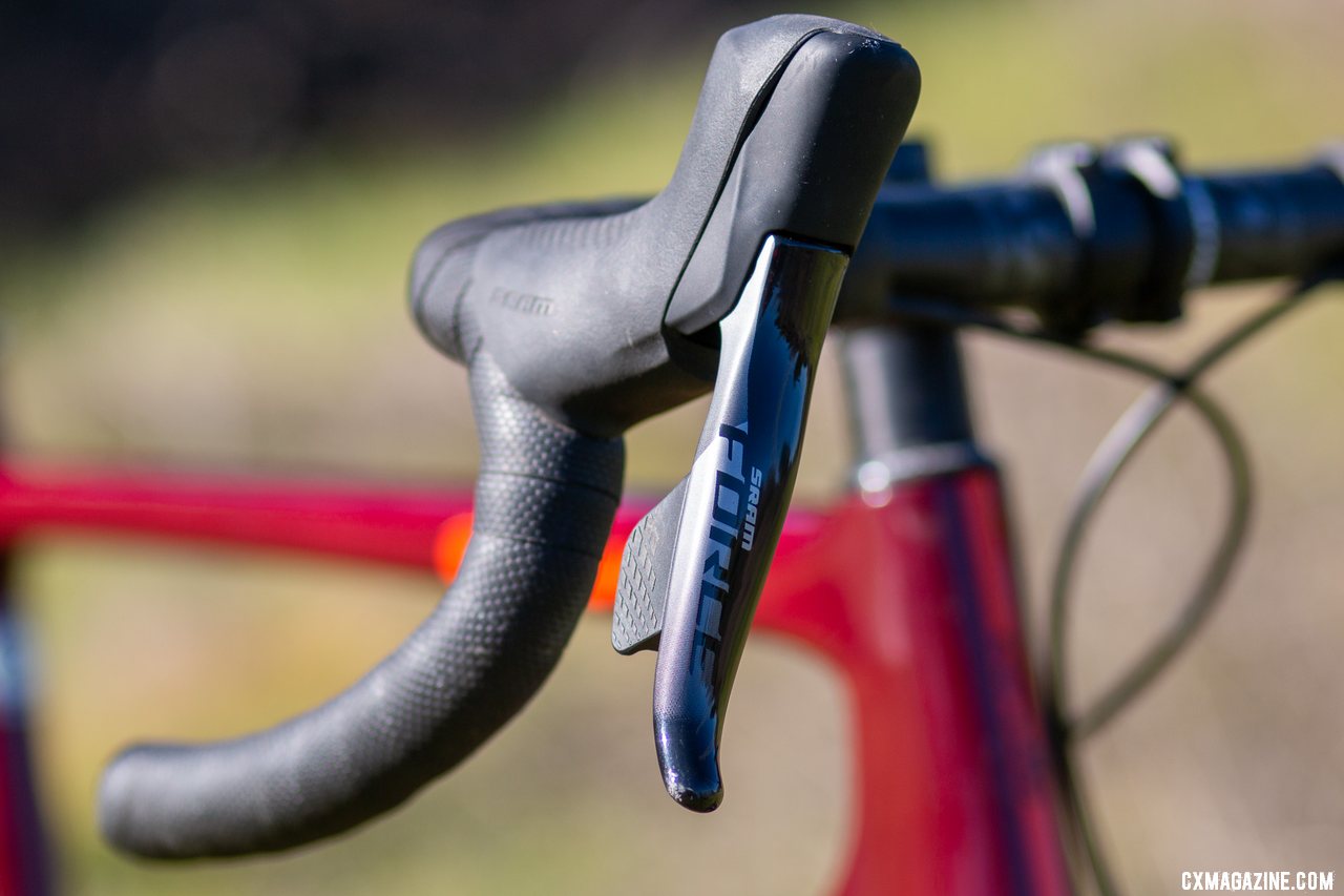 The 10-33t cassette that comes with the bike is the widest available when using the Force AXS derailleur. The 36 x 33 low gear is quite tall for gravel, but arguably perfect for cyclocross. The bottom bracket is also SRAM DUB, in press-fit BBRight.