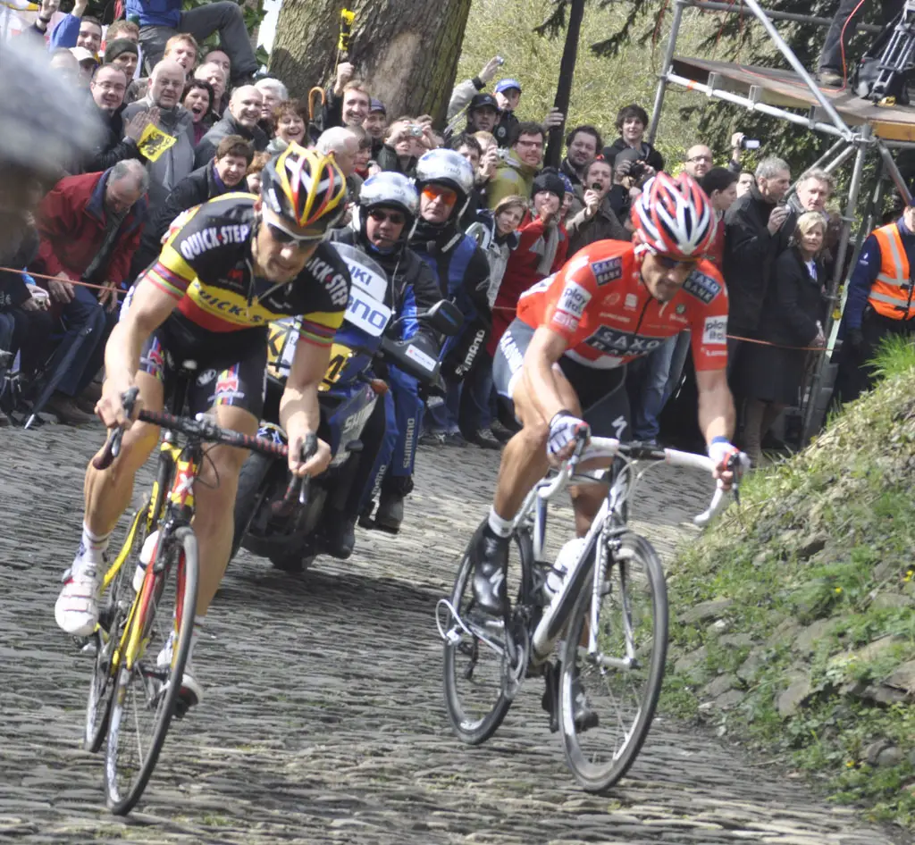 Cyclocross season hasn’t been over for long now, and as we watch the best roadies duke it out in northern Europe, the oft-asked question is, “Why don’t more of these guys race cyclocross?” – Lars Boom, Marianne Vos, Steve Chainel, et al excluded. The obvious short answer is that the pay scales between road and cyclocross just don’t compare. However as recent races have loudly demonstrated, including an incredible mid-race bike swap by yesterday’s eventual Tour of Flanders winner Fabian Cancellara (see video below), these guys have the skills. Even more importantly, many of the “cyclocross-specific techniques” actually can play a crucial role in a road race when things get dicey. Lance Armstrong’s cross-country jaunt, after swerving to miss a broken Joseba Beloki on a high-speed corner in the 2004 Tour de France, and his subsequent ‘cross dismount/remount, may be the most famous crossover moment. But ‘cross teaches riders how to deal with less-than-desirable surfaces and conditions, skills that benefit any tarmac specialist. Armstrong, for one, has more than dabbled in both mountain biking (Leadville) and cyclocross (Cross Vegas).