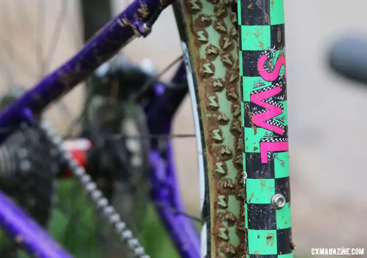 Like Powers and Compton, Thompson opted for FMB Super Mud tires, with its grippy, mud-clearing tread. Thompson's dad assured our photographer that his son was only borrowing the ENVE wheels from him. © Cyclocross Magazine