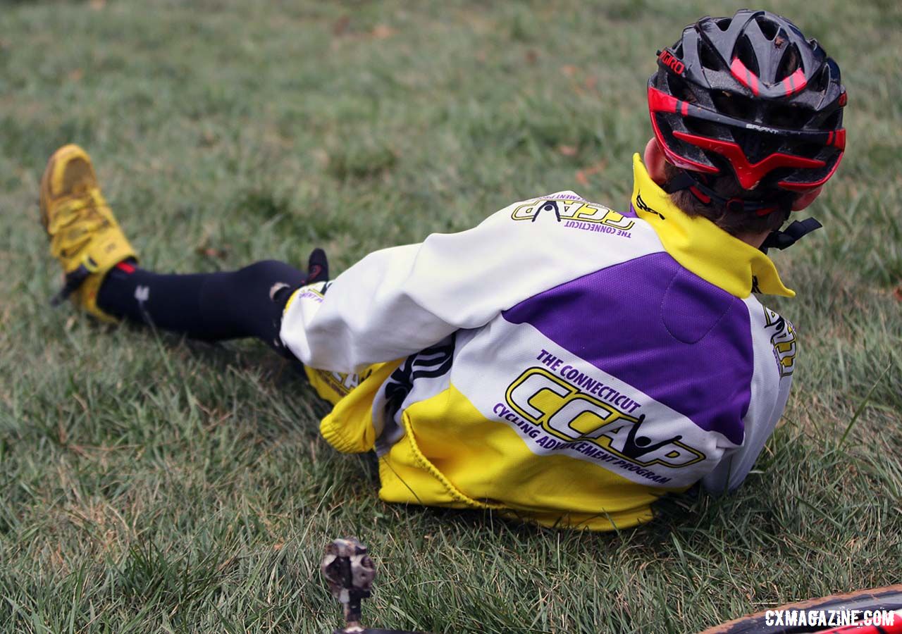 Like Powers and Compton, Thompson opted for FMB Super Mud tires, with its grippy, mud-clearing tread. Thompson's dad assured our photographer that his son was only borrowing the ENVE wheels from him. © Cyclocross Magazine