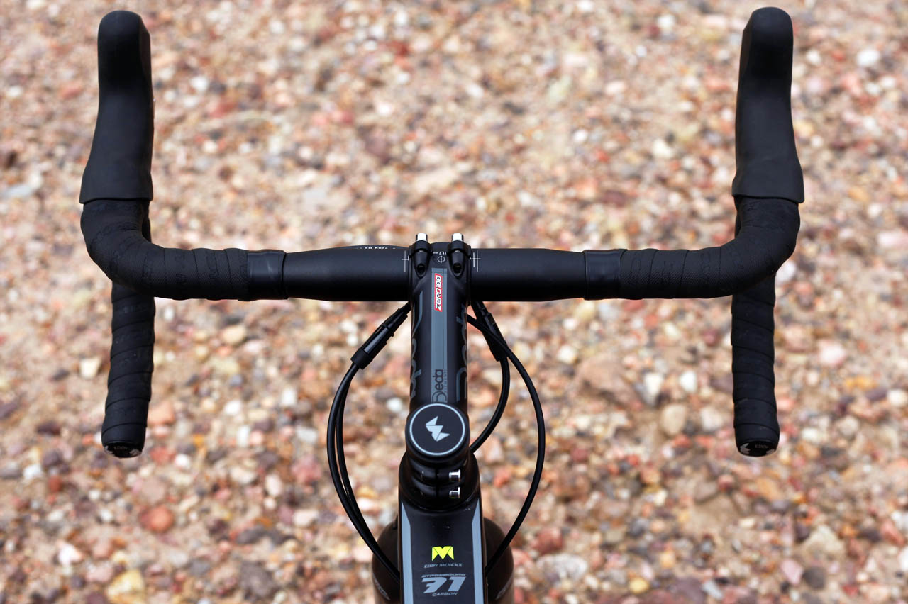 The cockpit features Deda Zero1 components. The Merckx branded top cap is a nice touch. © Cyclocross Magazine