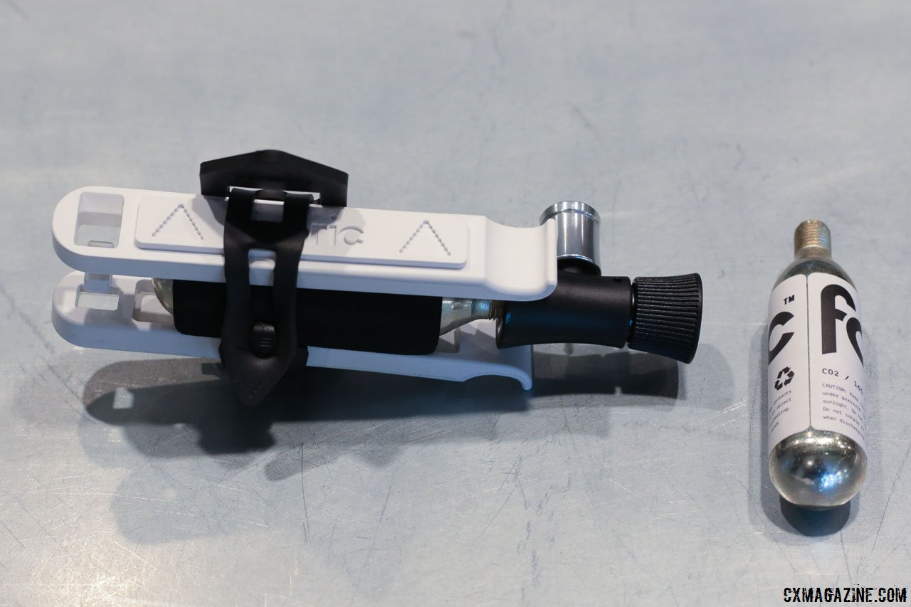 The new CO2 cartridge inflator from Fabric includes a flow regulation dial that allows you to save a half-used cartridge for later. Press Camp 2016. © Cyclocross Magazine