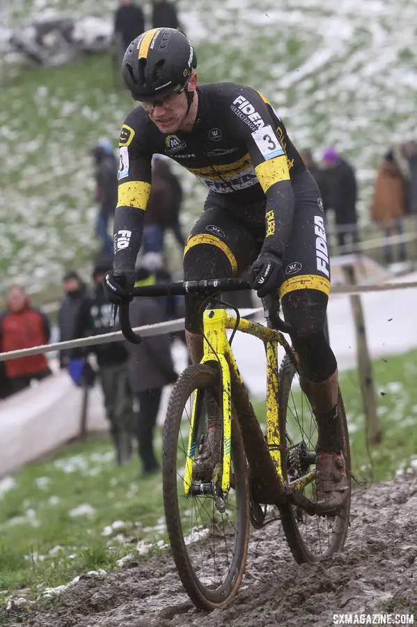 A relatively clean Corne van Kessel focuses on the task at hand early in the race. 2017 Vlaamse Druivencross. © B. Hazen / Cyclocross Magazine