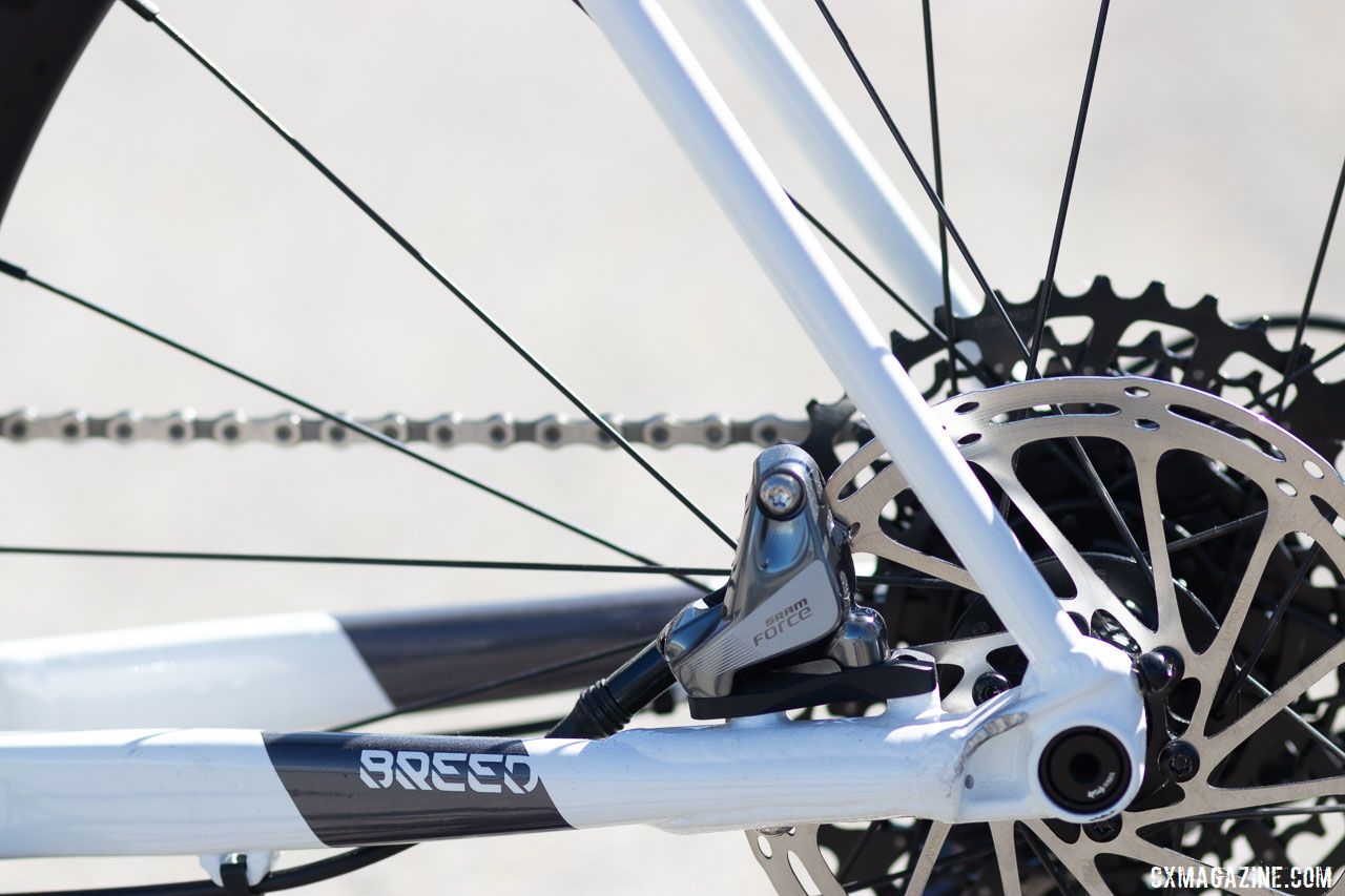 While the carbon cyclocross models are built around a 386 EVO bottom bracket shell, the alloy Breed models use a T47 threaded shell. Nicely sculpted chainstays offer clearance for up to 650b x 2" or 700c x 45mm rubber.