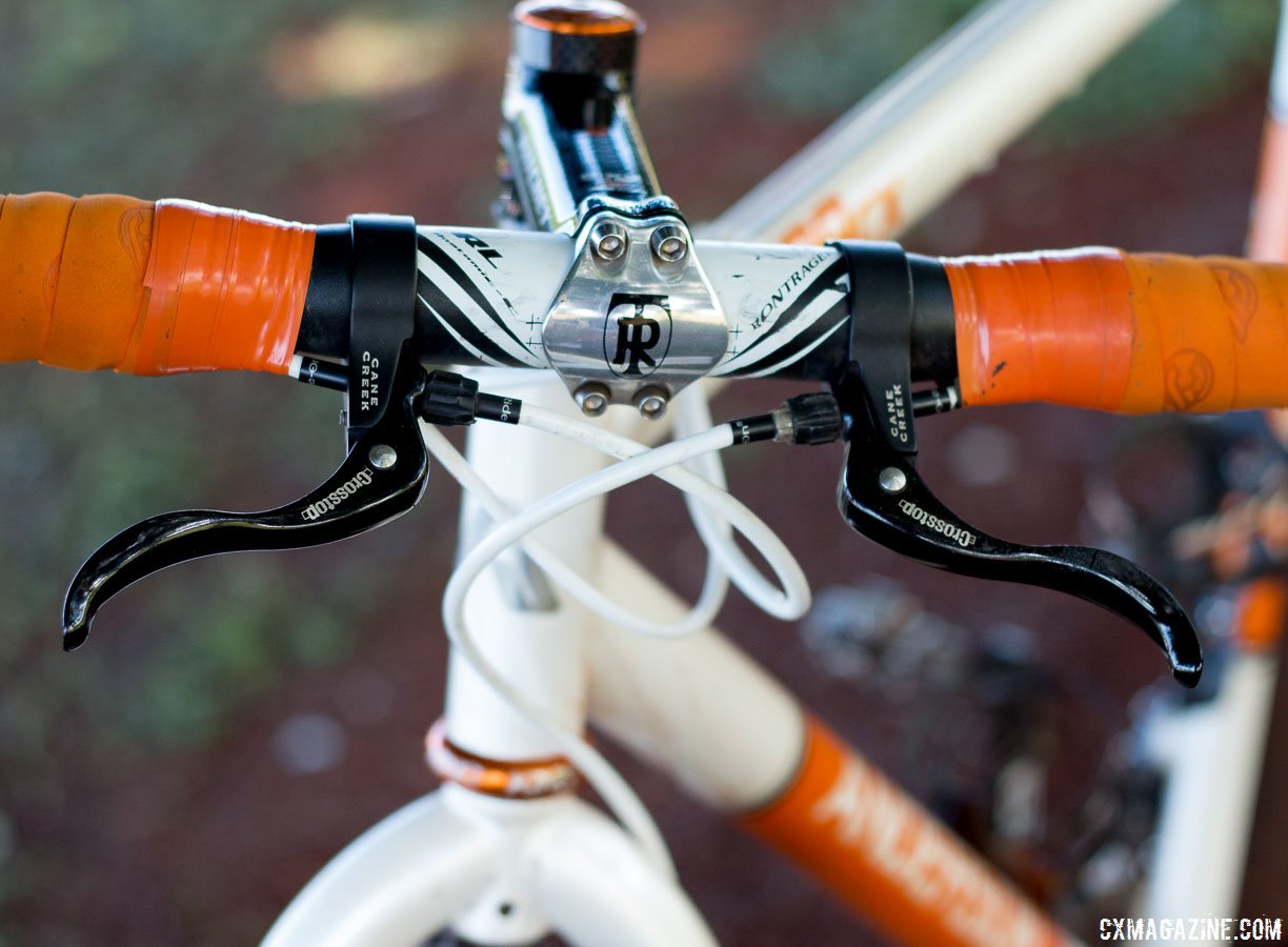 Speeddream.com provides the wheelbuild, pairing Stan’s 355 rims with Chris King ISO disc hubs. Wheelbuilder Dave Thomas laced the rims with orange alloy nipples—a nice touch to match the bike's color scheme. The wheels are equipped with Continental’s 29-inch Race King 2.2 tires, giving the bike a true monster ’cross look and feel.