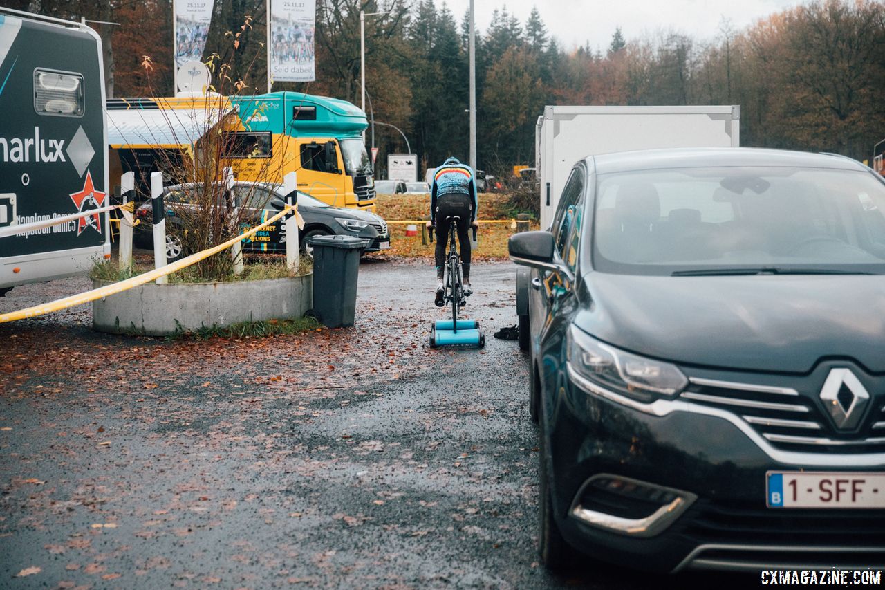 After the mud comes the cool down on the rollers. 2017 World Cup Zeven Course Inspection. © J. Curtes / Cyclocross Magazine