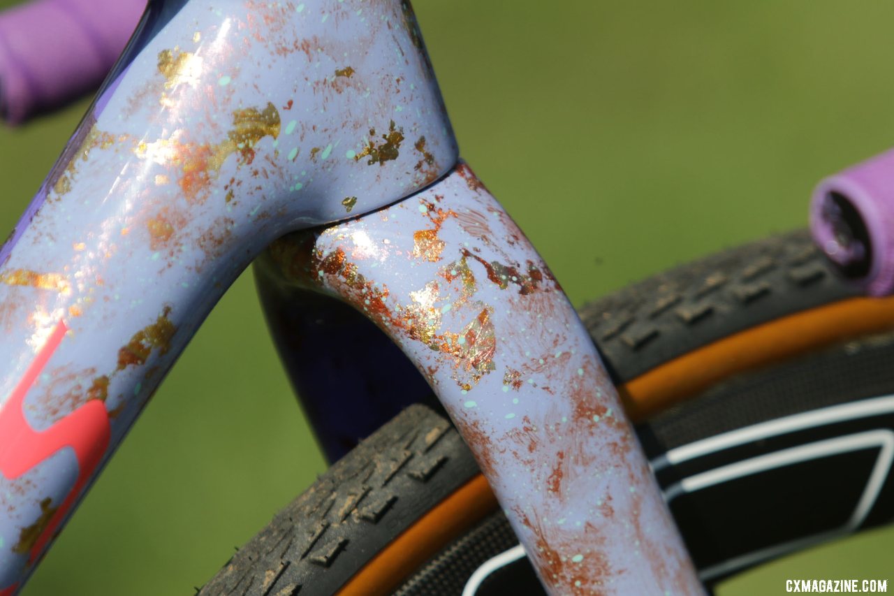 Rochette's custom paint represents her in and out-of-competition personalities. Maghalie Rochette's new 2022 Specialized CruX cyclocross / gravel bike. © D. Mable / Cyclocross Magazine