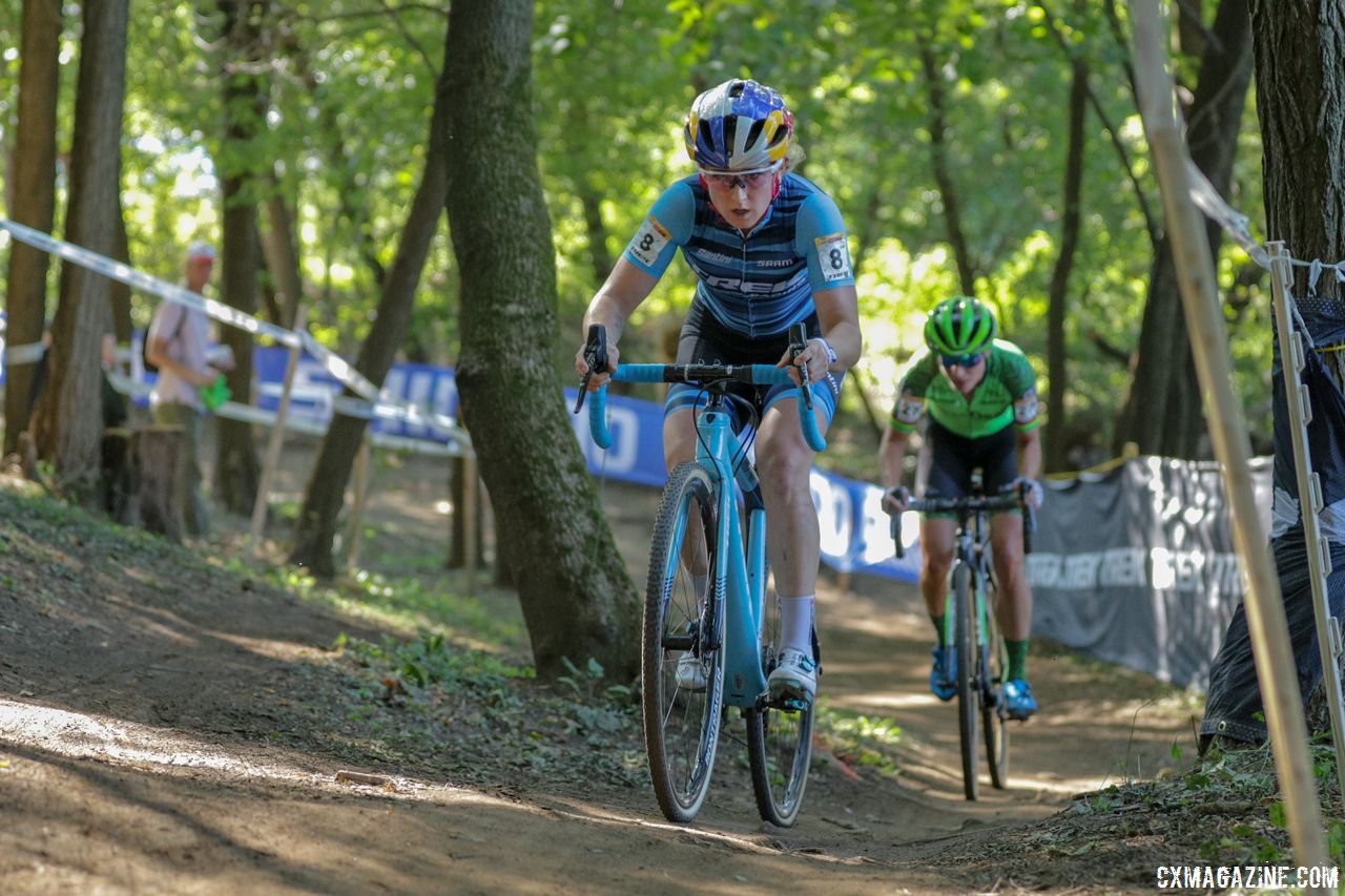 As she descended toward the pavement at the bottom of the Segafredo Run-Up, it appeared that Noble's efforts might have started to break Vos on the warm September afternoon. She carried a small gap into the Run-Up and exited with a several-bike-length lead. Vos, however, recovered, and by the mid point of the bell lap, Vos was back on Noble's wheel.
