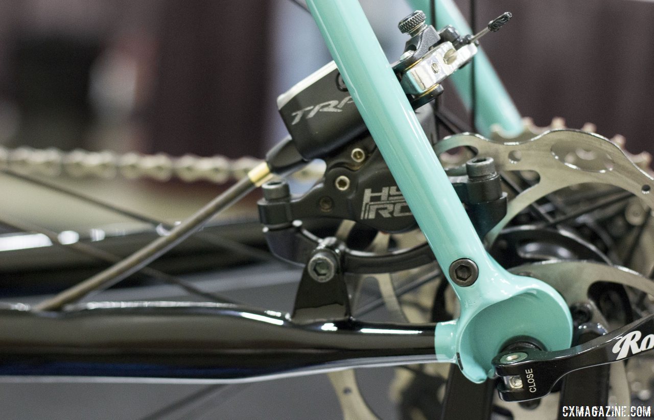 Mars Cycles' internally routes the cables for the rear brake and rear derailleur. NAHBS 2015. © Cyclocross Magazine