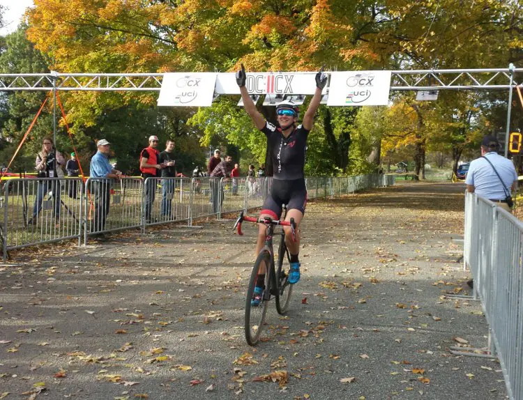 Cam Dodge (unattached) took the win on the Men’s side out of the decisive selection of four riders that occurred midway through that included Ben Berden (Wcup Stoemper/TRP), Ben Frederick (beyondCX), and Dan Timmerman (Stan’s NoTubes Elite CX). While leading the group on the last lap, Timmerman would go down after suffering a pedal strike in a corner, leaving the other three to decide the podium. Dodge quickly got around Timmerman’s mishap first and was able to create a gap that he held to the line, with Berden coming around Frederick in the final meters to take second.
