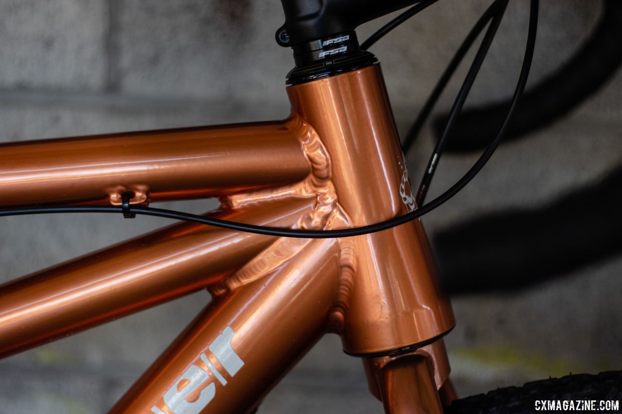 Like Juiliano’s bike, the frame is TIG welded, but unlike the cyclocross bike, cables are externally routed.