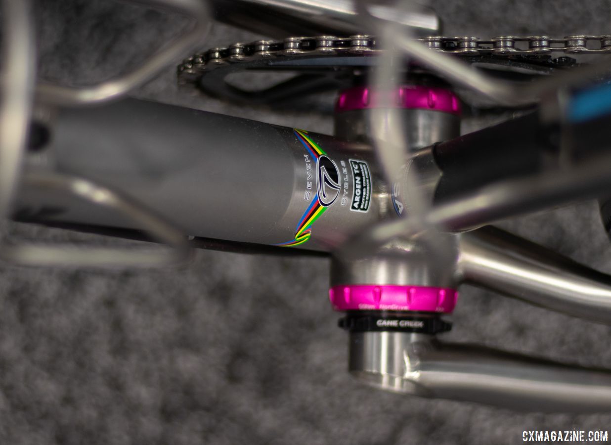 The one-of-one Seven Cycles' Evergreen Pro SL is a unique bike, but not the only pink/blue show bike in Sacramento. © A. Yee / Cyclocross Magazine