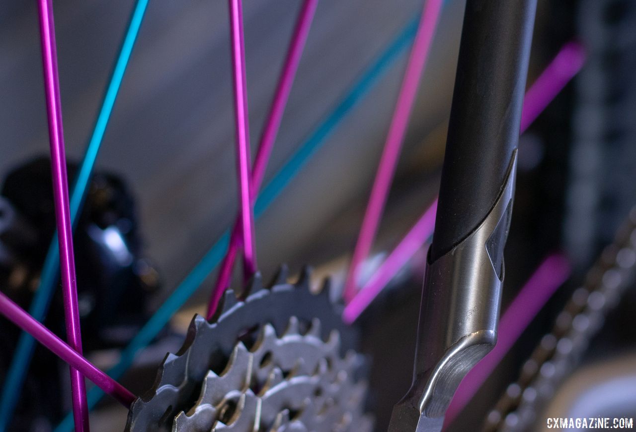 Seven Cycles welds two tubes to make the Chop Stay, which provides 20mm more clearance than a formed straight chainstay would. Seven can also bend the chainstay into a more traditional drop stay, but we’re told that only offers 6mm more tire clearance.