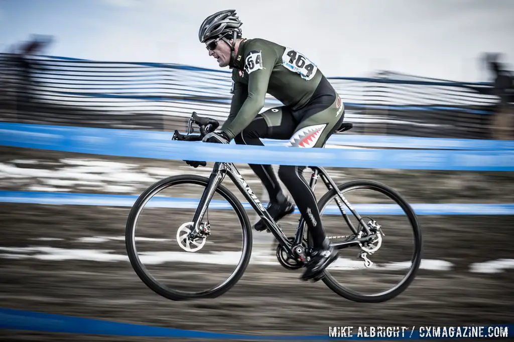 Darron Cheek (Cross Propz Racing) from Breckenridge, CO poses for a motion blur while racing Masters Men 45-49 at the 2014 National Championships. © Mike Albright