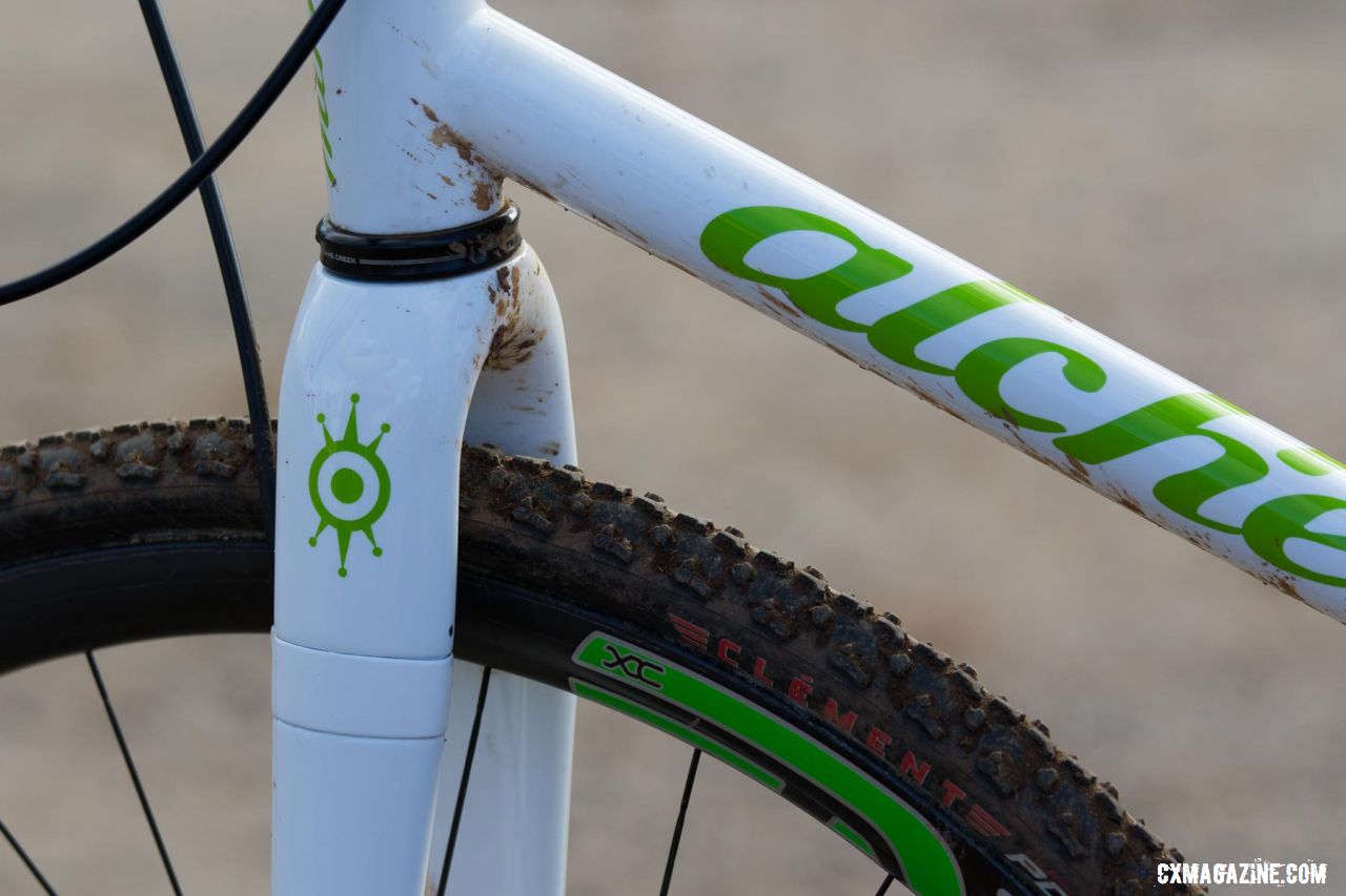 The Alchemy Pegasus is a custom steel offering from the Colorado-based builder mated to a carbon Enve fork. Allen's bike features a quote from hiphop group Atmosphere on the seatstay that reads, "Not every pony grows up to be a pegasus." In Allen's case, he was flying. The Pegasus is actually just a variation on Alchemy's $2599 Konis frameset, just without derailleur cable stops or Di2 holes. The company offers custom geometry for $500.