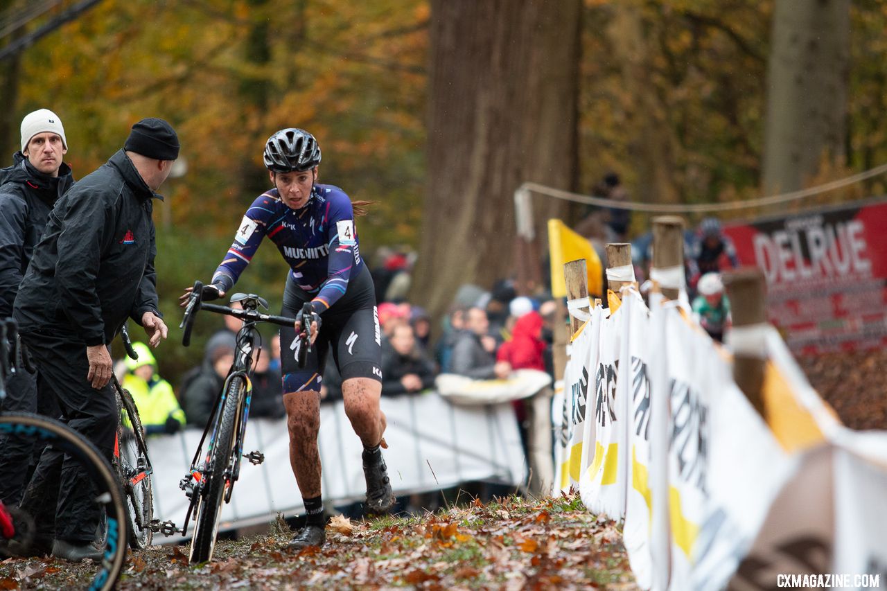 Nikki Brammeirer had her best ride of the season to finish second. 2018 Superprestige Gavere Women. © A. Yee / Cyclocross Magazine