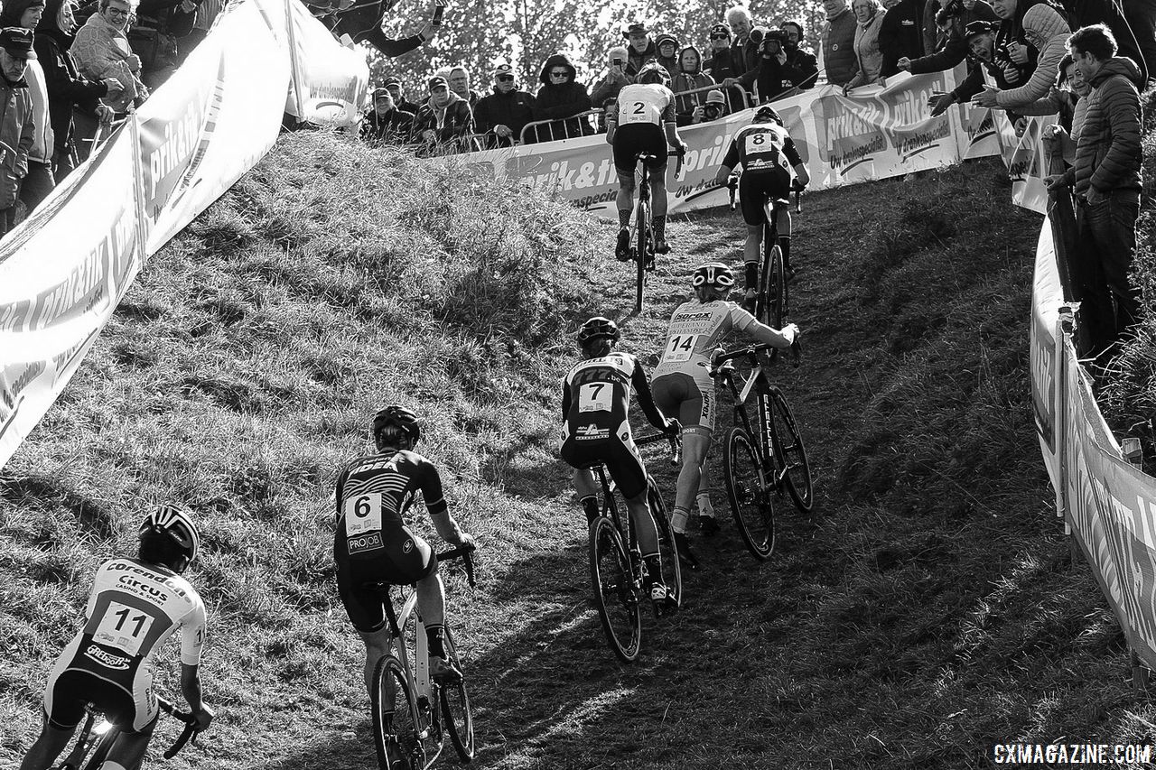 Up one of the steep inclines. 2018 Brico Cross Ronse / Hotondcross. © B. Hazen / Cyclocross Magazine