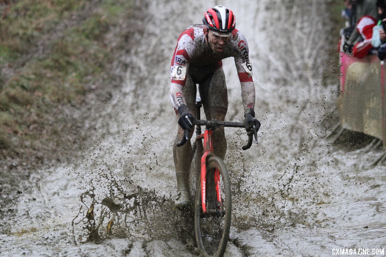 Tom Meeusen focuses on the muddy path in front of him. 2018 GP Sven Nys Baal. © B. Hazen / Cyclocross Magazine