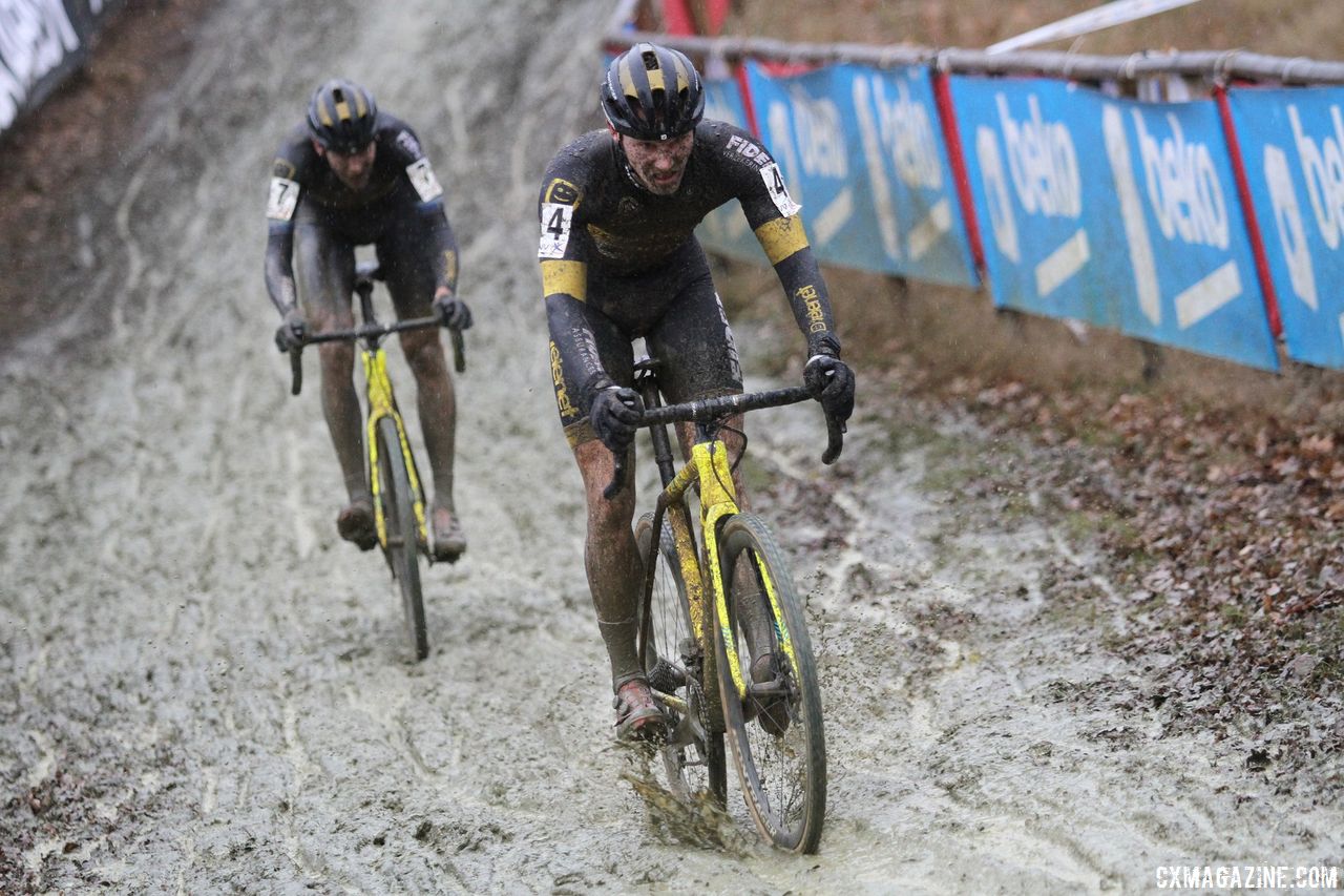 Corne van Kessel and Toon Aerts were left to battle for third after the two leaders left them behind. 2018 GP Sven Nys Baal. © B. Hazen / Cyclocross Magazine