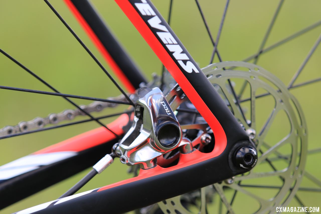 The Super Prestige uses an external collar to hold the post in place. Wout Van Aert's Stevens Super Prestige Cyclocross Bike, Waterloo World Cup 2018 © D. Mable / Cyclocross Magazine