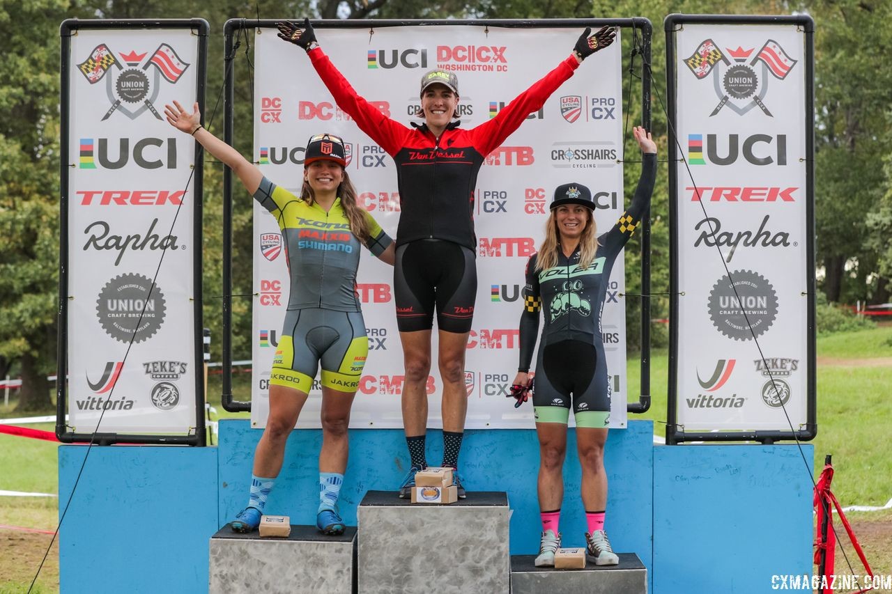 “Lap two I lost some contact. She definitely had a gap on me. I was dangling,” said Gilbert, who had never raced at DCCX before, about catching Fahringer for a 1-2 battle in the second half of the race. “She bobbled a corner, just an off camber on lap three, and I caught back on. And I started feeling a lot stronger after that. We started attacking each other a little bit. I felt pretty strong. She was actually hitting the straightaways better than I was, just hammering, throwing down the power. Actually, that is why I did not think I would win.