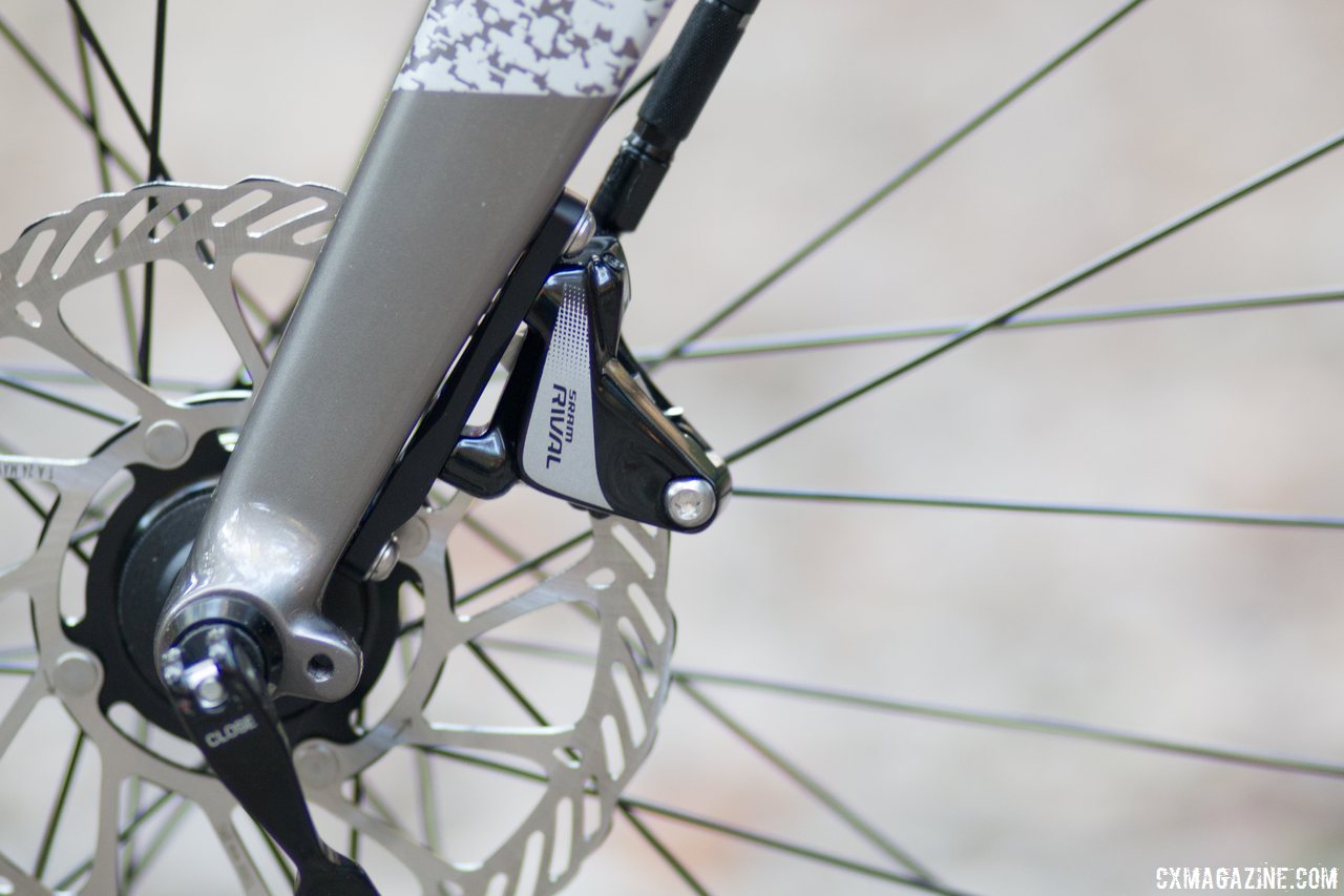 Flat-mount disc brakes up front and out back. Bombtrack Hook EXT cyclocross / gravel / adventure bike. © Cyclocross Magazineundefined