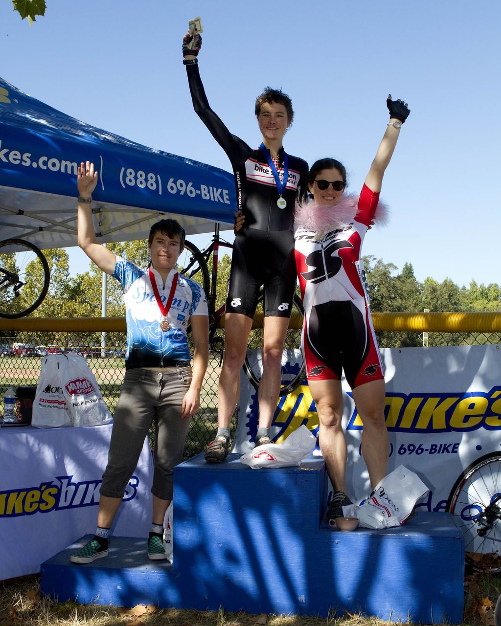 Women's Category A Podium - Sacramento Cyclocross Series. Ellen Sherrill (first), Emily Thurston (second), Jen Jordan (third)
