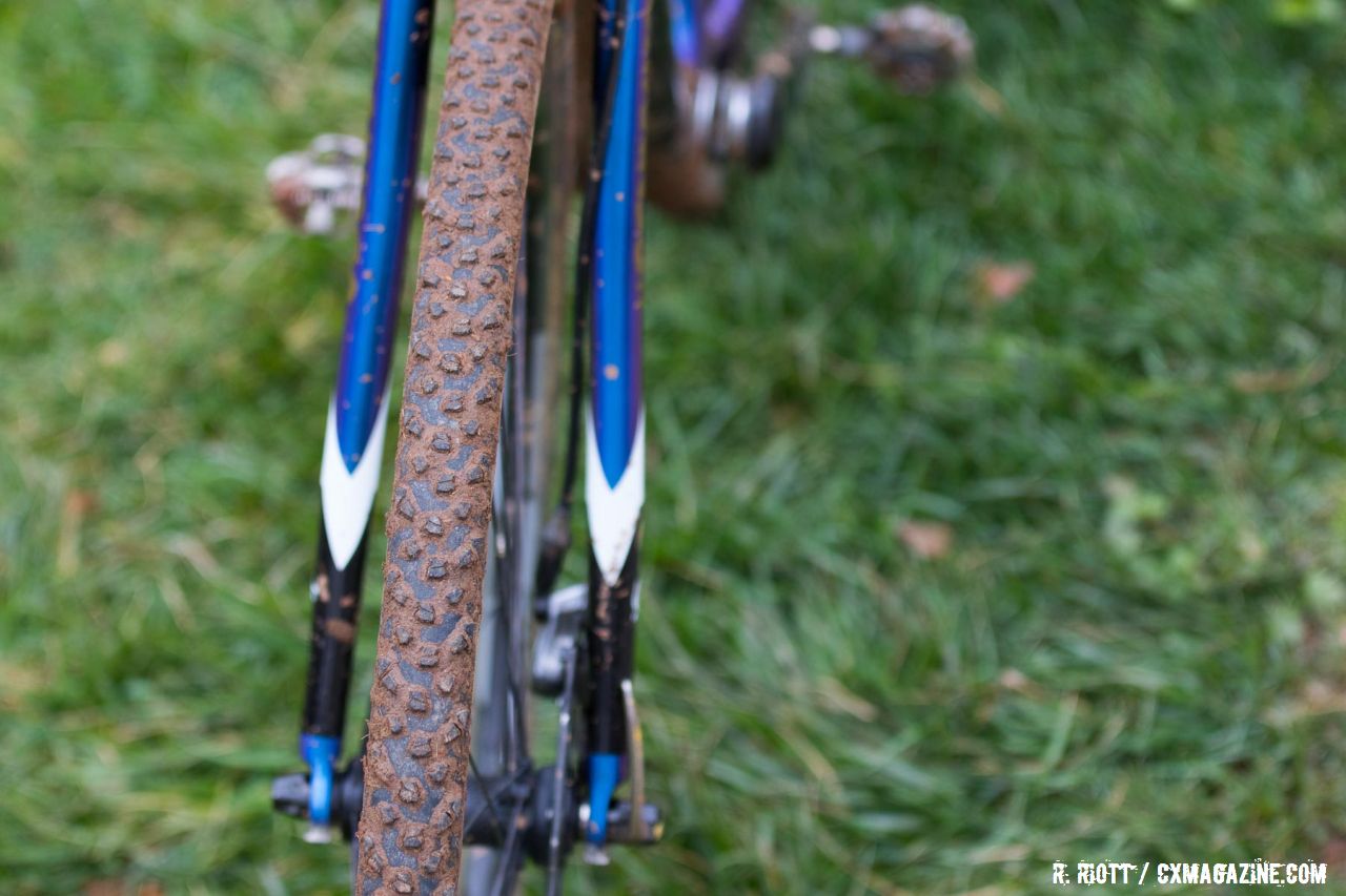 The purported benefit of the system are stiffness gains resulting in added control and eliminating chainline issues that can result from running thru axle systems on disc brake bikes. It does mean, for now at least, a limitation in wheel options, short of a conversion kit from Next Wheels. Gomez Villafañe doesn't yet have that worry as his frameset is a 2015 model with quick release dropouts, an option we saw many racers go with in Asheville.