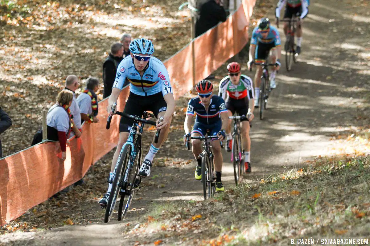 Michael Vanthourenhout pushed the pace early. Elite Men, 2016 European Cyclocross Championships UEC. © B. Hazen / Cyclocross Magazine