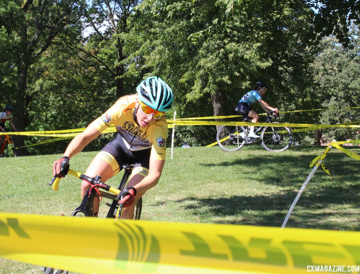 Guagliardo's fast start would be short lived, however, as she lost traction early in the first lap and allowed the rest of the field to erase her fast start. Halfway through the first lap, Guagliardo's teammate Kelli Richter (Psimet) and Abby Strigel (unattached), who was making her return to cyclocross after a cameo appearance at the Wisconsin State Championships, put in an effort and got out ahead of the field.